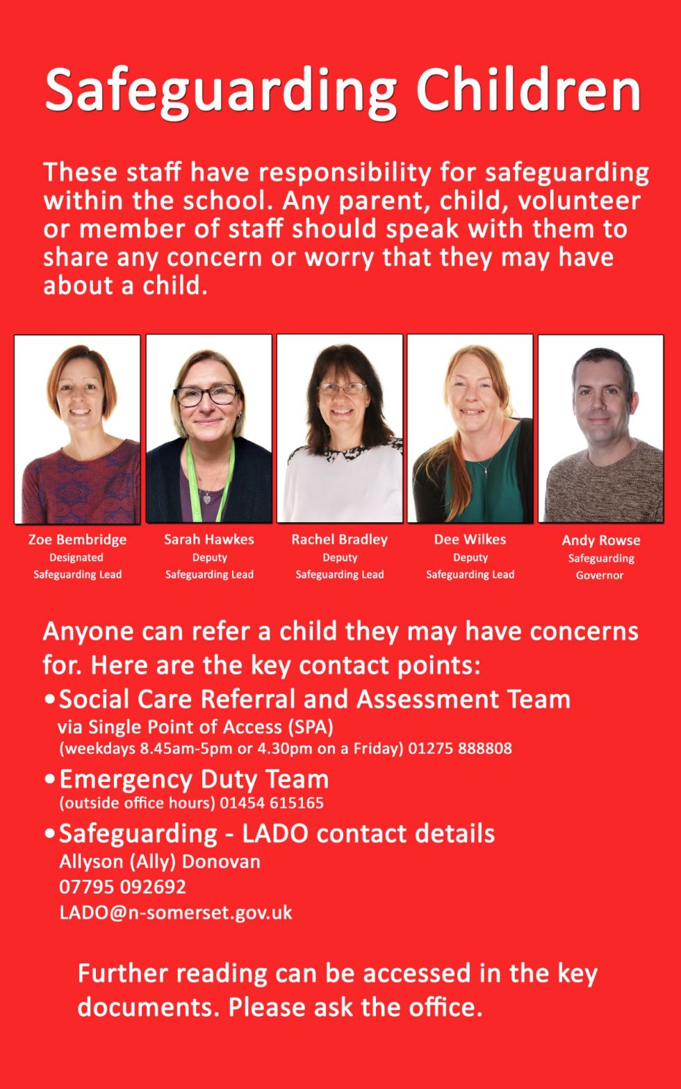 If the school has any safeguarding or child protection concerns then it will contact the parent or carer. The school has a duty to refer serious concerns to the North Somerset Social Care Team.